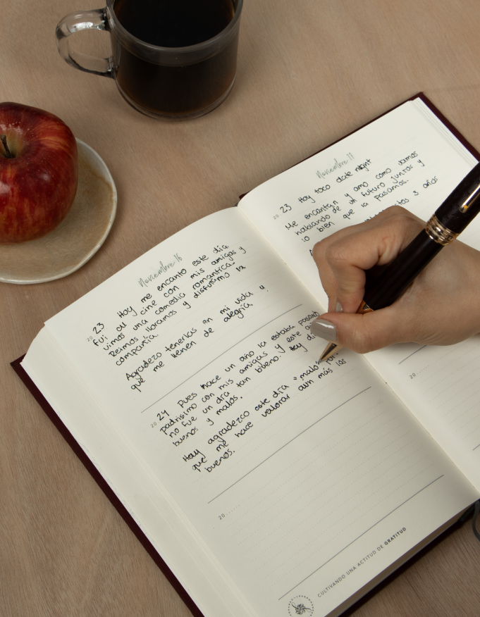 - Diario de gratitud guiado, especialmente diseñado para ayudarte a agradecer seis meses.