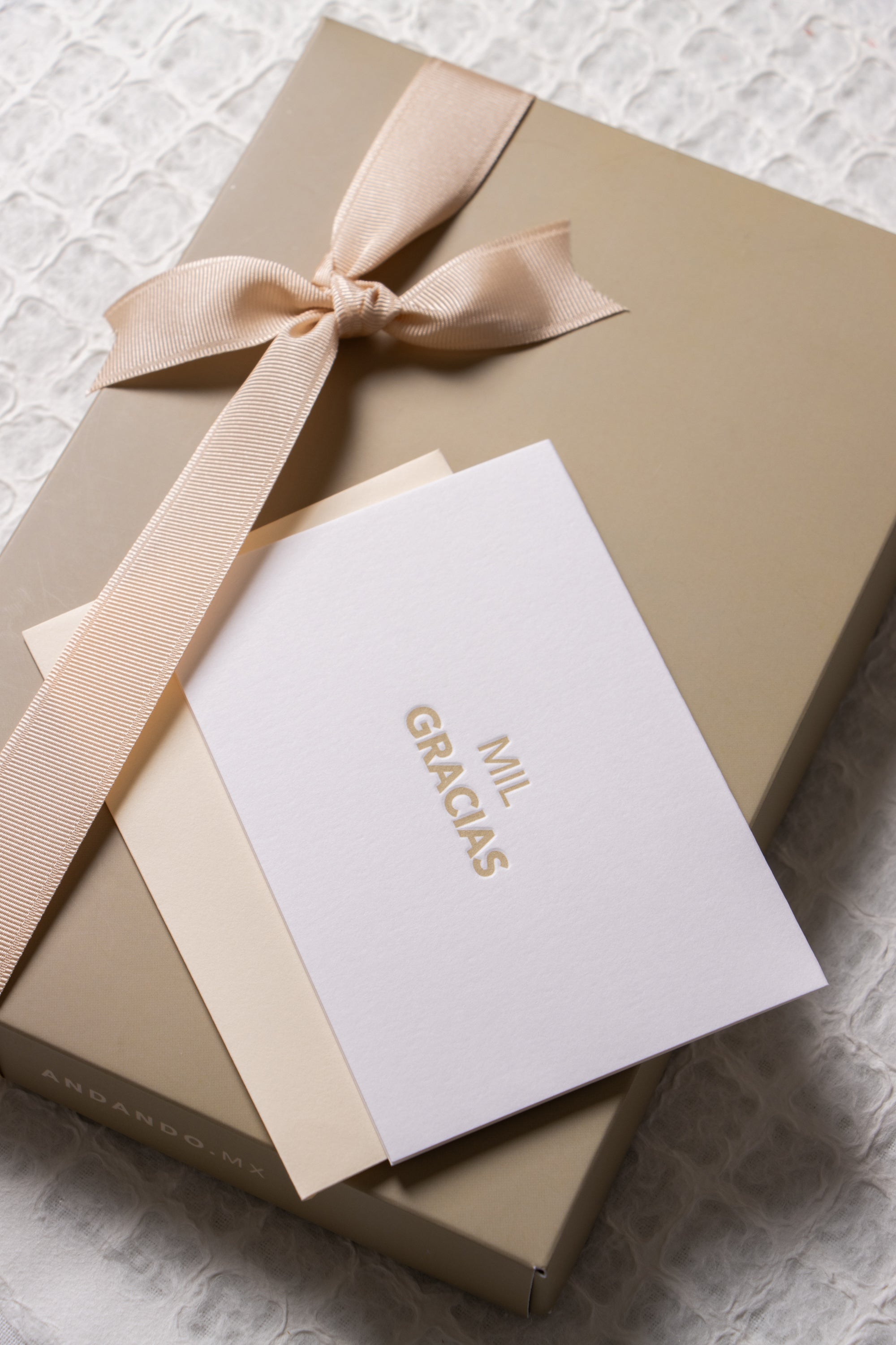 Cada paquete cuenta con 8 tarjetas y 8 sobres, con mensaje a elegir: Mil Gracias o Celebremos.